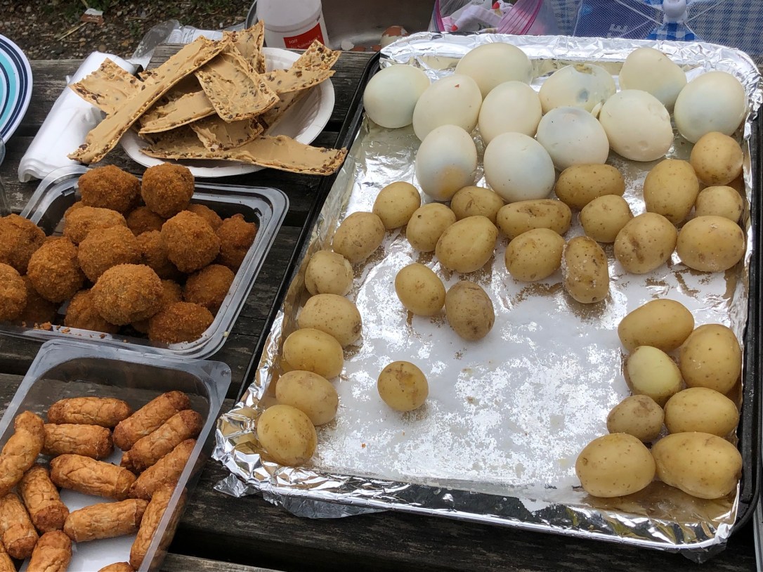 It would be fair to say that although Emily and Jon enjoyed their first ultra, it was a strange kind of ‘enjoyed’: both of them longed for the first aid station, and there was much grumbling about the hills. As I was there in the capacity of support and encouragement, I had to read them both carefully to judge when pushing just became annoying: Jon only insulted me and told me to ++++ off a few times, and as for Emily, I was more wary of her, and took silence as a sign to ease off a bit. Later in the event, they both told me that they had appreciated the approach, which I was really pleased to hear. The first aid station was at mile 11, and it really was the most amazing oasis! I have to say that the food was the best I have encountered at an event: they laid on boiled new potatoes rolled in crushed rock salt! We all ate a little too much at this point! Emily clearly felt better at having reached this milestone, and her mood visibly lifted. Off we went!
